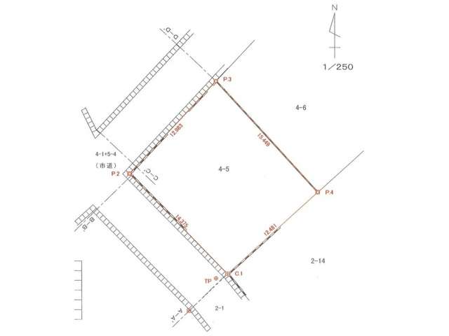 | 接道状況 | 角地(公道・北西側・間口12.98m・幅員5.5m、公道・南西側・間口14.37m・幅員5.5m) | ||