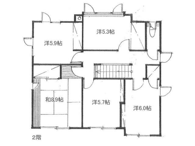 | 詳細間取 | 6LDK (1階:和6.3帖×1、2階:洋5.3帖×1、2階:洋5.9帖×1、2階:洋6帖×1、2階:洋5.7帖×1、2階:和8.9帖×1、1階:LDK22.5帖) | ||